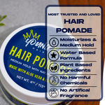 Say goodbye to stiffness and hello to that medium hold and luster your hair deserves. This ain't just any pomade; it's the key to taming those unruly curls without the dryness other stuff brings.