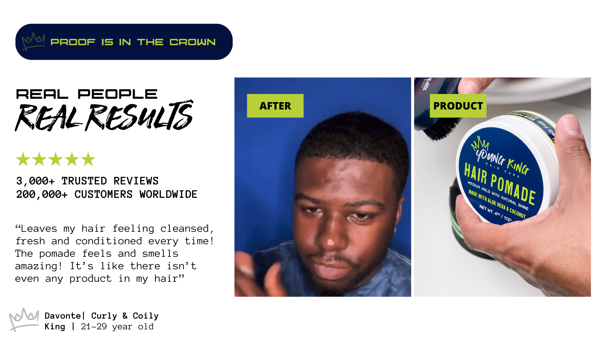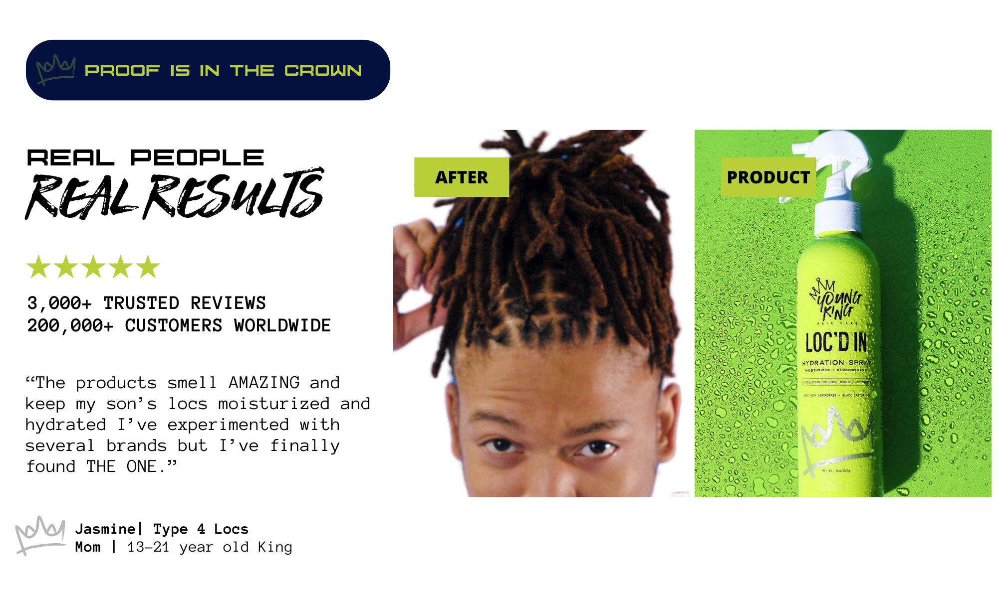 My son loves Young King’s. He has been using the product consistently for over a year. I can tell the difference in the health of his hair and he loves that the products show results.