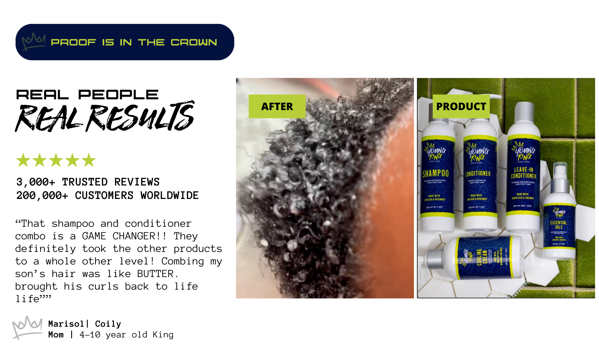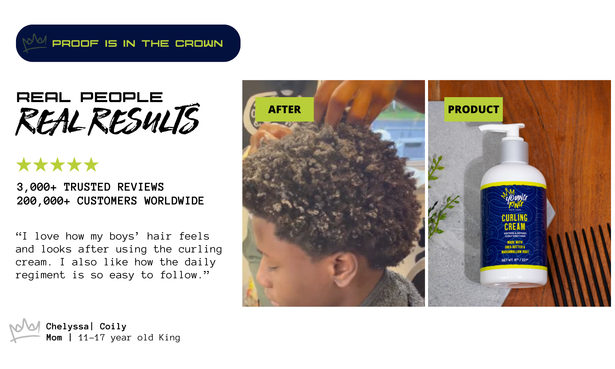 I’ve been using the entire line of Young King for over a year now. My toddler hair is very thick with tight coils..The shampoo and conditioner cleans well but my favorite is the curling cream because it brings the curls to LYFE with moisture and shine without dull residue finish and stays all DAY and smells AMAZING 🤩 SUPER SATISFIED! Thank you FAMILY for creating VALUE for OUR ROOTS! Keep this rolling and please dnt sell! We loose so much when ingredients that doesn’t benefit us are apart of a new formula! Stay ORIGINAL. I APPRECIATE YA’LL, PEACE AND BLESSINGS 💜